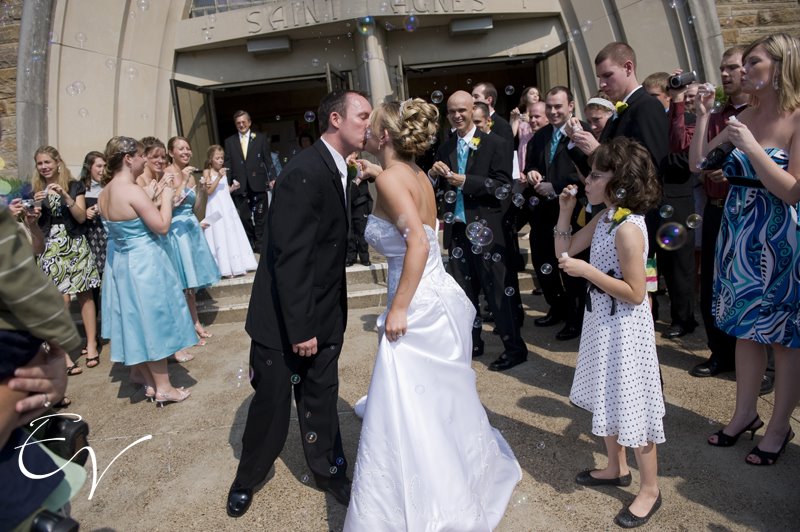 Congratulations to Kim and Eric, who were married last Saturday at St. Agnes Church on Evansville’s West Side with a rocking reception at The West Haven Chalet.