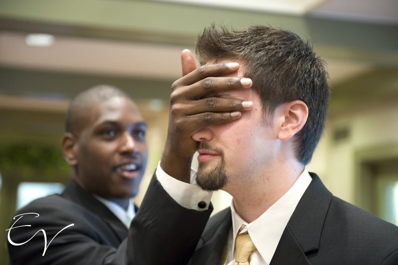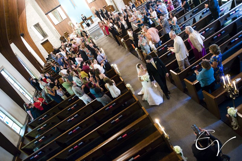 The only logistical problem of the day- the fact that they were taking the same limo to the church but Eric did not want to see Kristen until she walked down the aisle- turned into one of the funniest moments of their day. Eric was blindfolded by his groomsman and led into the limo with Kristen and the entire bridal party. They pulled it off and had a magnificent wedding.