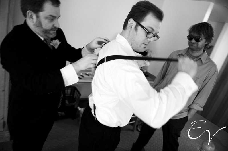 Jeff (left) was busy all morning getting the ceremony site ready as well as helping out his groomsmen get dressed.