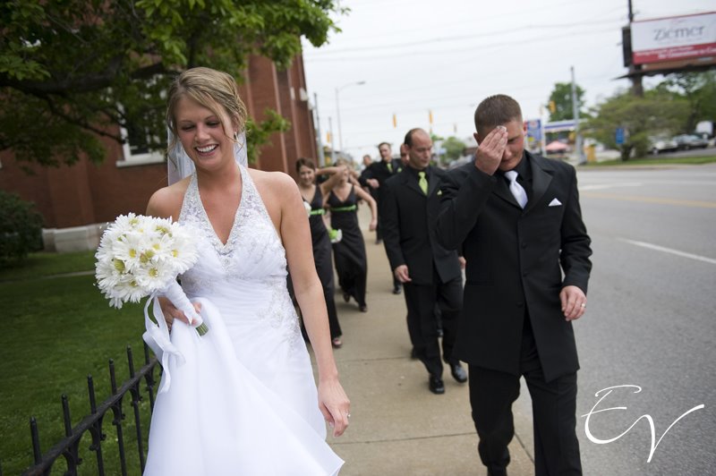 One of our favorite moments of their day occurred as soon as they walked out of the church. Curtis, who is the the Armed Forces, took a little flack from the bridesmaids for claiming that it was so hot. “You spent two years in the desert and this is hot?”, one of the bridesmaids asked. I just love the look on Valerie’s face as Curtis wipes his forehead!